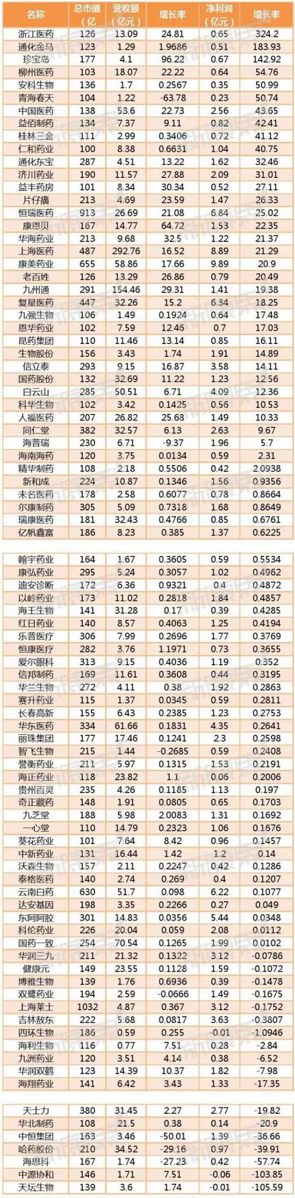 其中,净利润同比增长超过50%的企业有6家,分别是浙江医药、通化金马、珍宝岛、柳州医药、安科生物、青海春天。净利润负增长或亏损的企业达到18家。